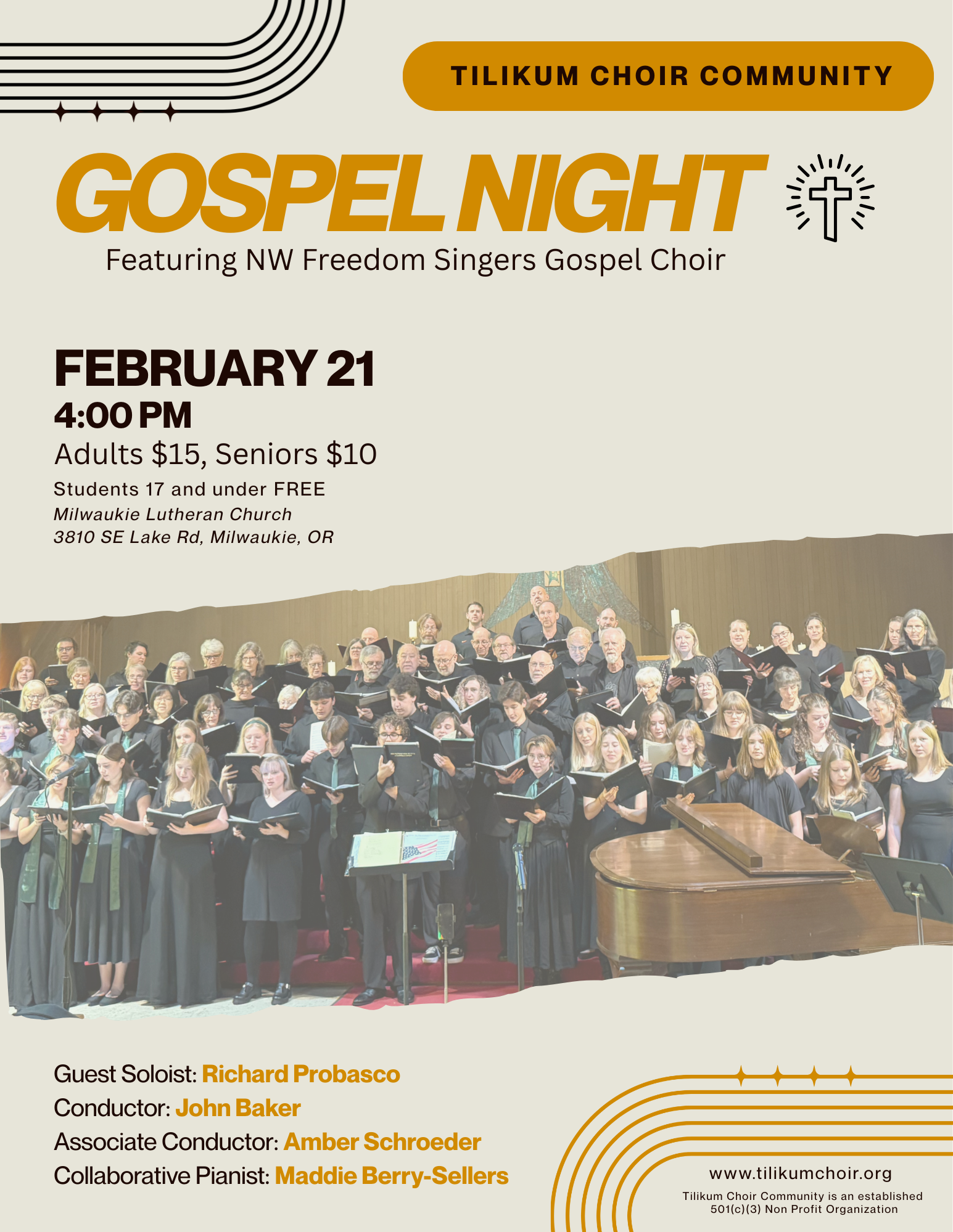 The Tilikum Choir Community's mission is to provide choral performance opportunities and choral education for all members of the community. We bring together enthusiastic singers from the Portland Metro area to foster connection and create joy through high-quality, passionate choral singing, achieved by intentional rehearsal and inspired performances.